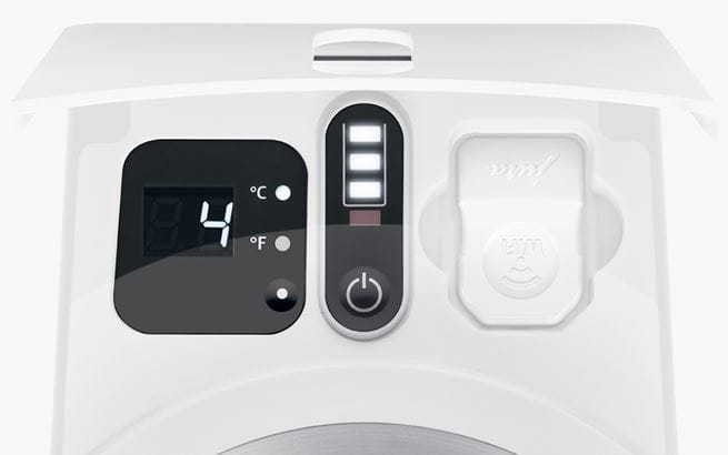 Завдяки Cool Control свіжа молочна піна для таких модних напоїв, як флет вайт, завжди виходить ідеально. Вся річ у молоці, яке постійно охолоджується до оптимальної температури 4 °С. У минуле пішли також неприємні бризки, що утворюються під час приготування кави. Бездротовий зв'язок* холодильної установки Cool Control з кавоваркою, а також новий інтегрований індикатор рівня забезпечують можливість своєчасного поповнення молока.
